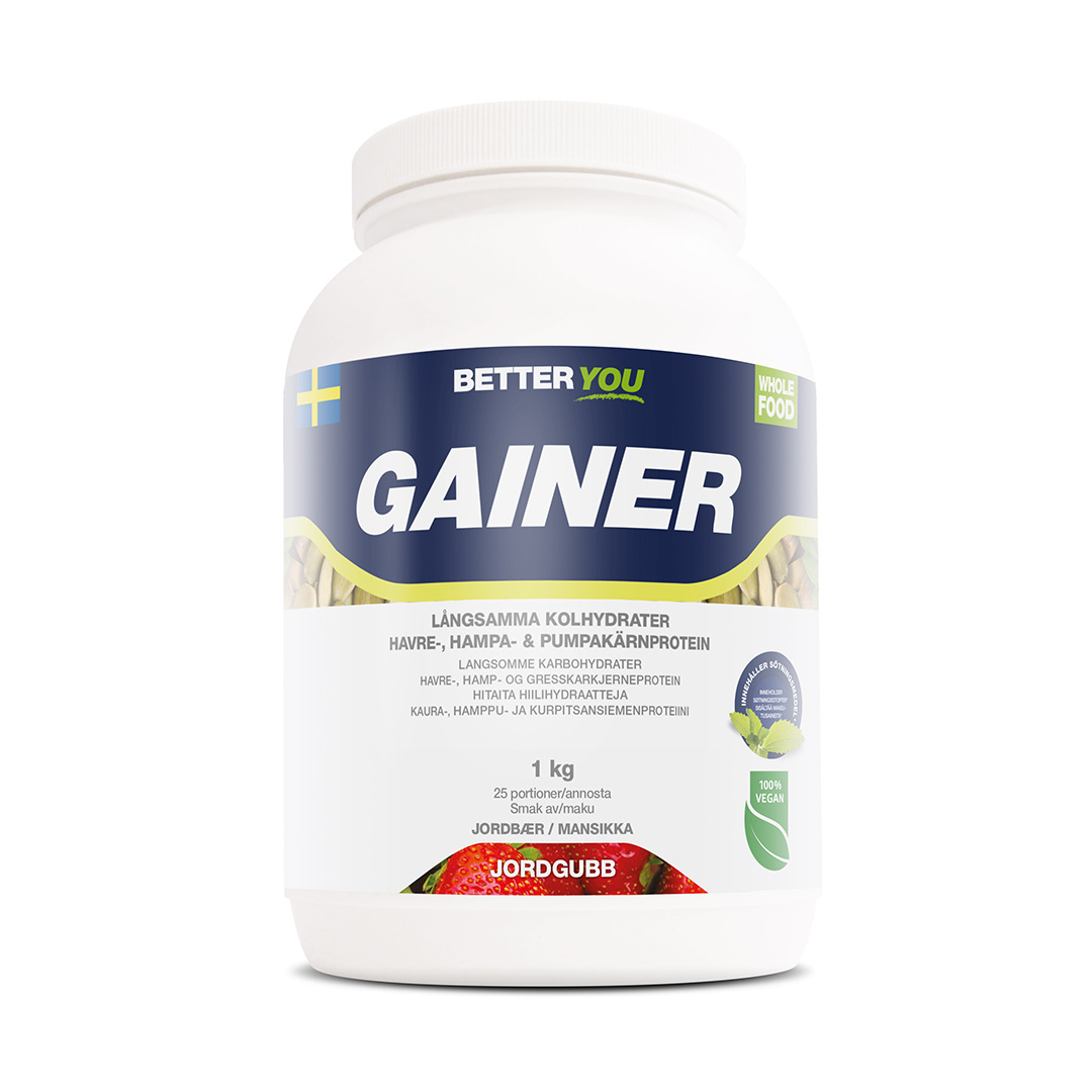 Ingredienser: Havremjöl (svensk råvara), havreprotein (svensk råvara), palatinos (isomaltulos), hampaprotein, pumpakärnprotein, avfettat kakaopulver, aromer, *sötningsmedel (steviolglykosider från stevia).
