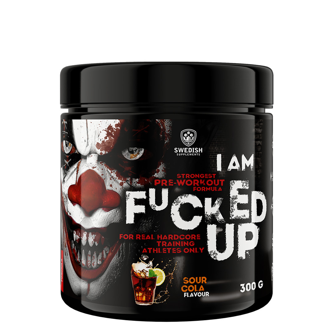 Swedish Supplements Fu*ked up Joker Edition PWO 300 g Sour Cola är en PWO* i pulverform med 300 mg koffein per portion och med smak av Sour Cola. Innehåller vitamin B6 och niacin (vitamin B3).